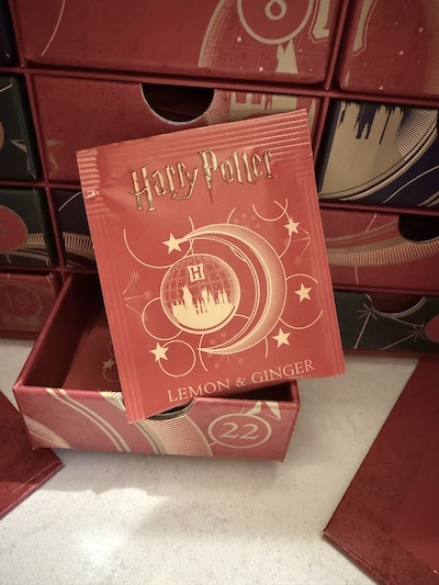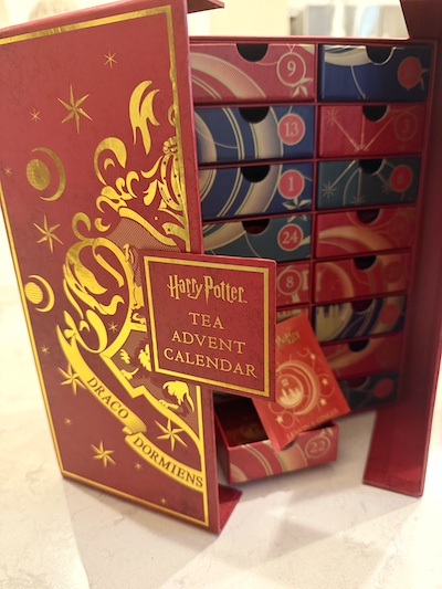 This morning’s tea felt like opening a tiny magical doorway, since it came from my Harry Potter Advent Calendar, gifted to me at Christmas and hiding ninety-six enchanting little teas behind its doors.